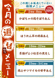 週替わりでいろんなお惣菜を販売しています。